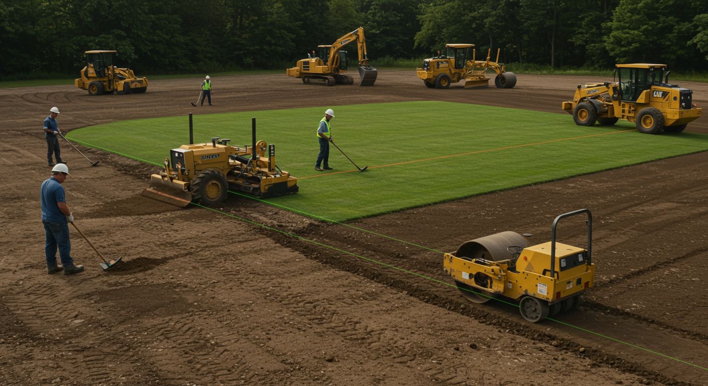 Выравнивание территории перед посевом газона с использованием профессионального оборудования