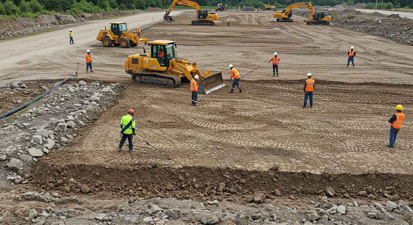 Подготовка участка начинается с анализа грунта: выявляются его тип, плотность, уровень грунтовых вод и неровности поверхности. Далее следует очистка территории от мусора, растительности и крупных камней. На следующем этапе осуществляется снятие верхнего слоя почвы, выравнивание с использованием строительной техники и ручного труда, а также формирование дренажных систем для отвода лишней влаги. После выравнивания грунт уплотняется катками или виброплитами, чтобы предотвратить оседание. Завершающий этап — разметка участка в соответствии с проектом, контроль уклонов и подготовка основания к прокладке инженерных коммуникаций.