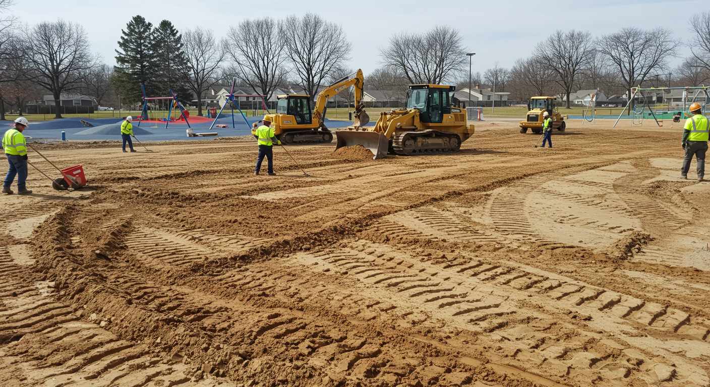 - После выравнивания дождитесь оседания грунта перед установкой игровых конструкций.